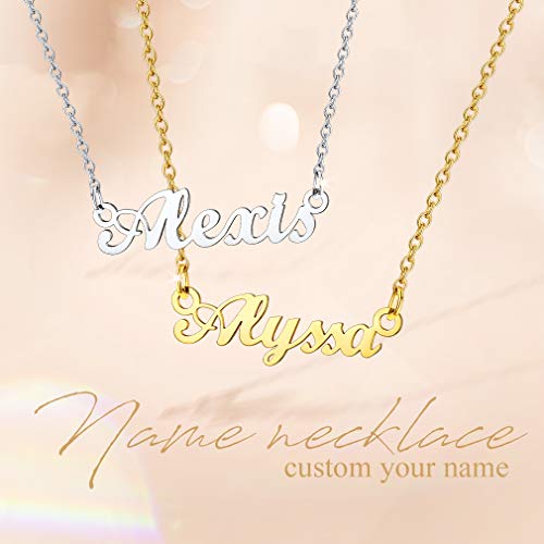 Custom4U - كوستوم 4 يو قلادة اسم مخصصة هدايا مجوهرات للنساء والفتيات والام فضي/ذهبي/اسود مع سلسلة 16+2 انش/40+5 سم صندوق