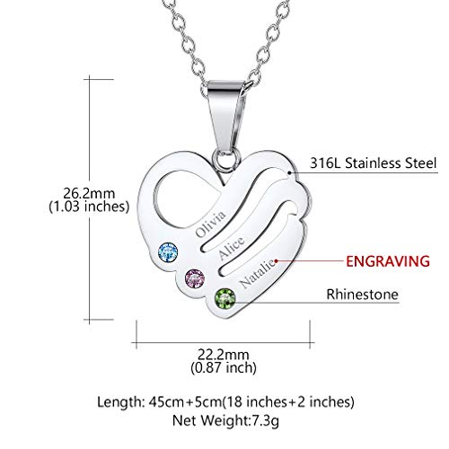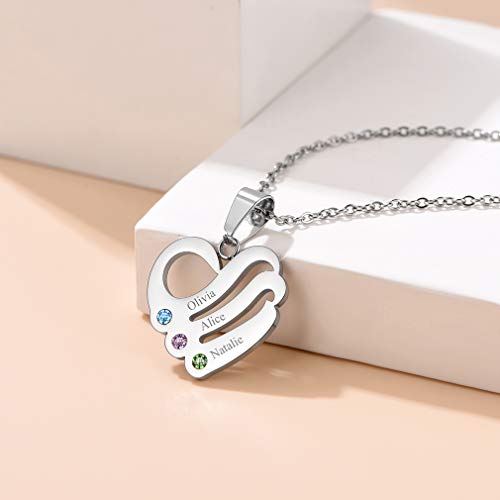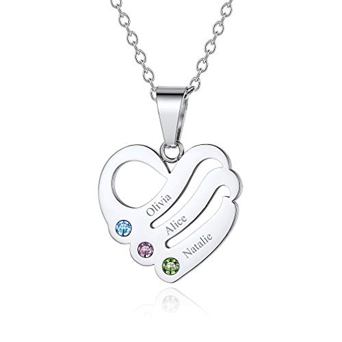 Custom4U - كوستوم 4 يو قلادة تحمل الاسم هدايا حجر الميلاد قلب مخصصة للنساء والفتيات عيد الام وعيد الحب مع صندوق