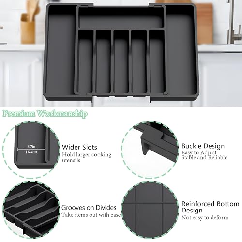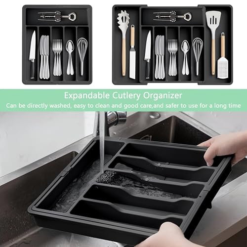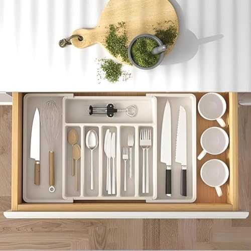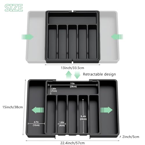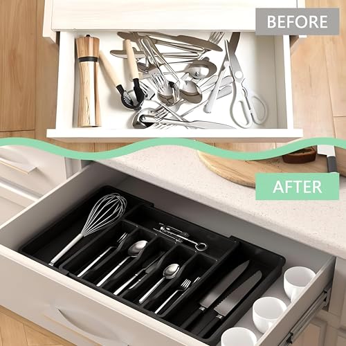 - قم بزيادة مساحة الدرج الخاص بك مع تصميم قابل للتوسيع يمتد من 33 سم إلى 57 سم، يستوعب بسهولة المزيد من الشوك والسكاكين والملاعق وأدوات تقديم الطعام وأدوات المطبخ - تخلص من الفوضى واستمتع بالتنظيم المثالي كل يوم.