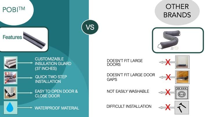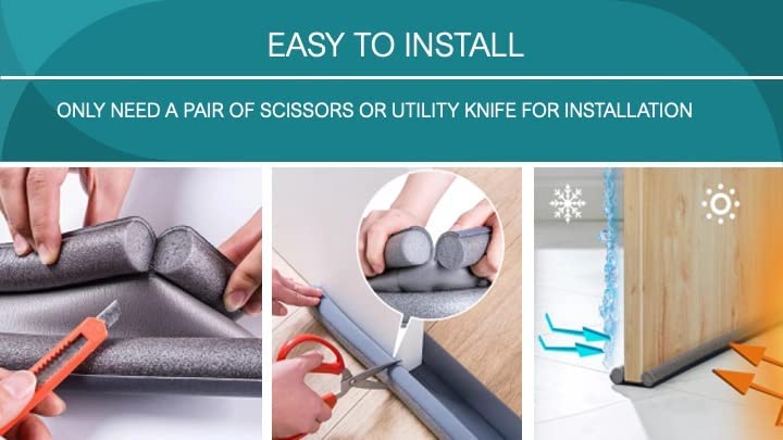 - سهلة التركيب - تتميز سدادة الباب بتصميم لاصق فيلكرو مرن يجعلها سهلة التركيب. تم تصميم شريط الباب بتصميم ملائم للباب بإسفنجتين كبيرتين تتموضعان على جانبي الباب. لن تتحرك سدادة الباب عند فتح وإغلاق الباب.