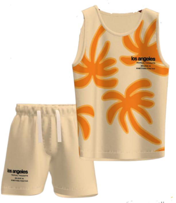 Generic - طقم هوم صيفي cutاولادي تيشرت بيج مشجر اشجار برتقاني وشورت سمر ملتون بيج برباط.6سنوات للخروجات والفسح والمصايف مناسب .قطن ناعم100%