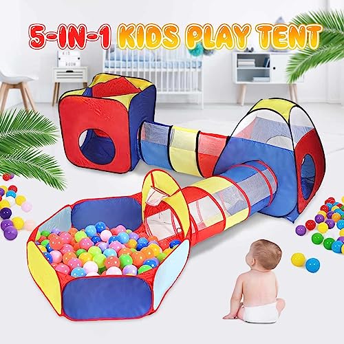 خيمة وألعاب للأطفال 5 في 1 تشمل نفقًا وسترة بتصميم ملون تصلح للأطفال من الجنسين للاستخدام داخل وخارج المنزل