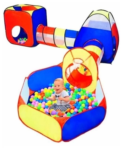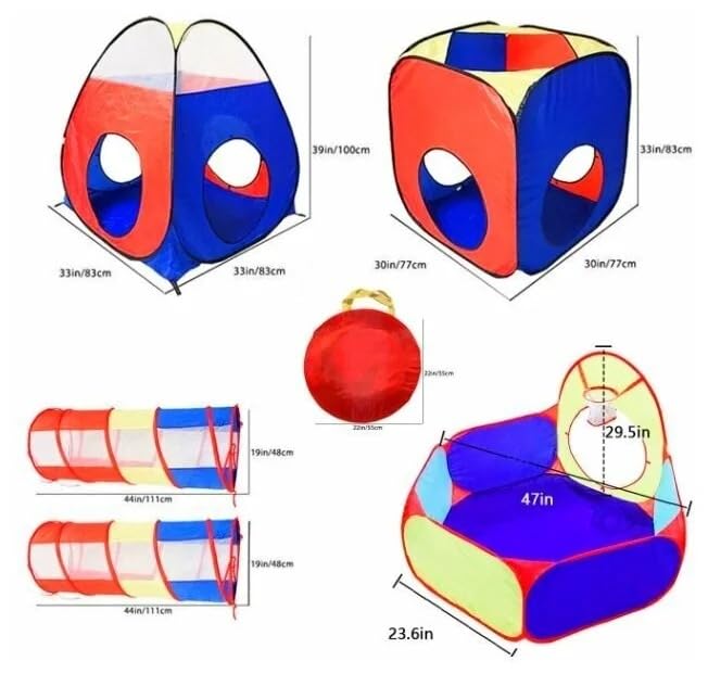 - نضمن التسلية للأطفال بفضل خيمة اللعب الملونة والمتعددة الاستخدامات 5 في 1! يتوفر فتحتا اختباء وممران تحت الأرض للتنقل بينهما.