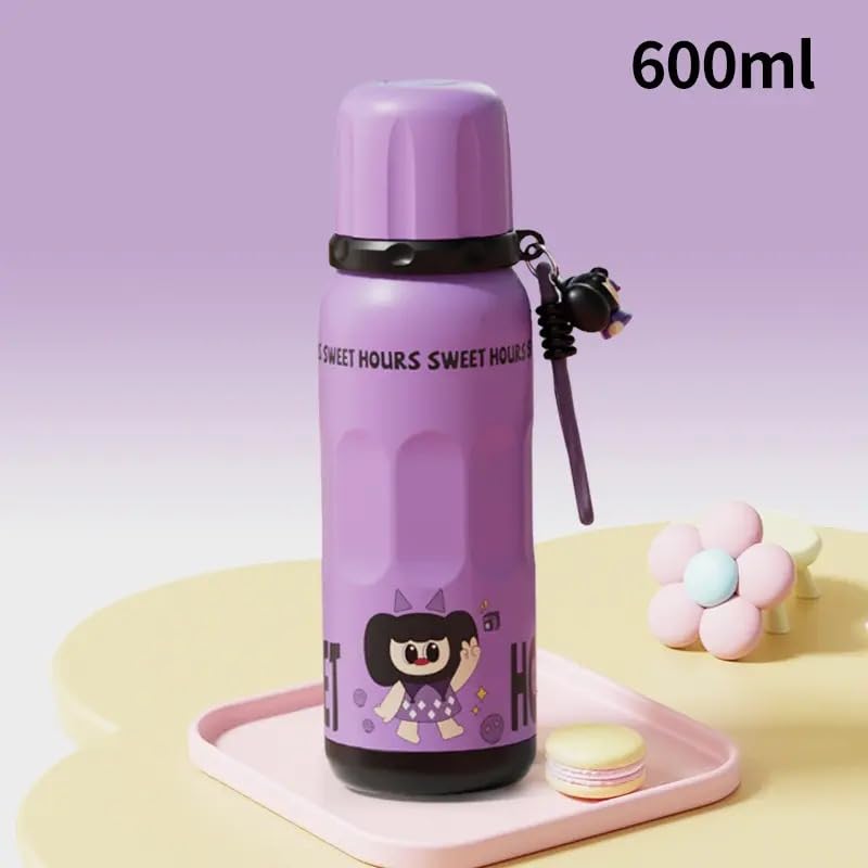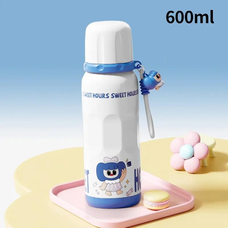 Generic - زجاجة مياه رياضية لطيفة غير لاصقة - كوب معزول مزدوج الجدار مع شفاطة ومصمم بيد، كوب سفر مانع للتسرب للمشروبات الساخنة والباردة، سعة 600 مل (أبيض)