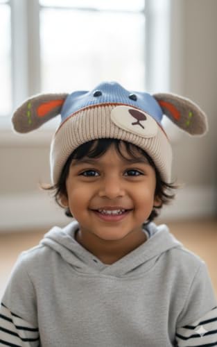 Generic - قبعة صغيرة بتصميم حيوانات لطيفة للاطفال - قبعة شتوية دافئة مبطنة بالصوف للاولاد والبنات (للاعمار من 2 الى 5 سنوات)