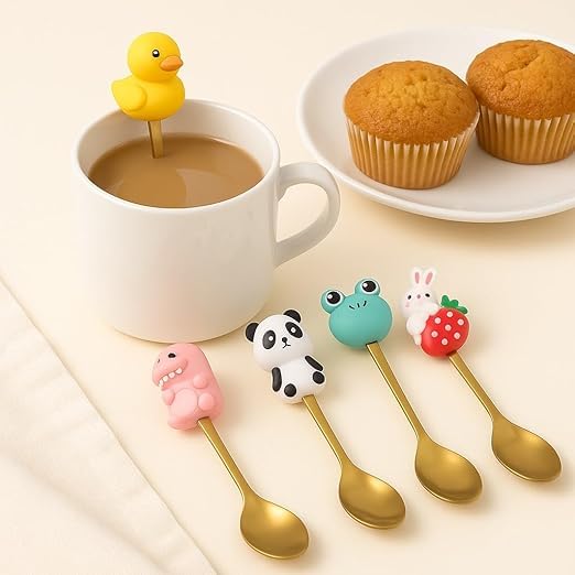 - خامة ممتازة: ملاعق فولاذ مقاوم للصدأ مطلية بالذهب تتميز بتصميمات حيوانات رائعة - مثالية للقهوة والشاي والحلويات