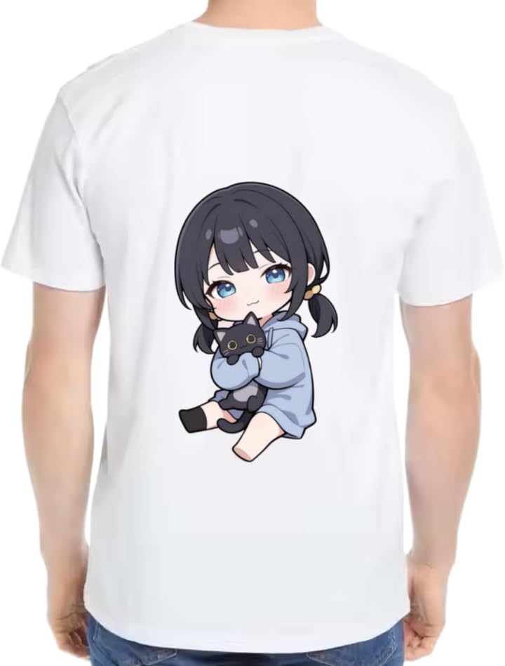 Generic - تي شيرت مطبوع عليه عبارة Cute Anime Girl With A Black Cat باللون الأبيض