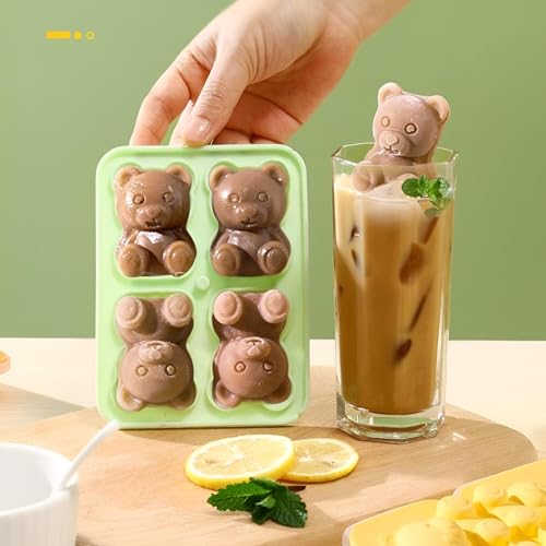 Generic - صينية مكعبات ثلج جذابة على شكل دب للكوكتيلات والمشروبات، تحتوي هذه القالب السيليكوني على أربع حجرات على شكل دب وغطاء قمع شفاف سهل الاستخدام لسهولة تعبئة وتقديم مشروباتك المفضلة