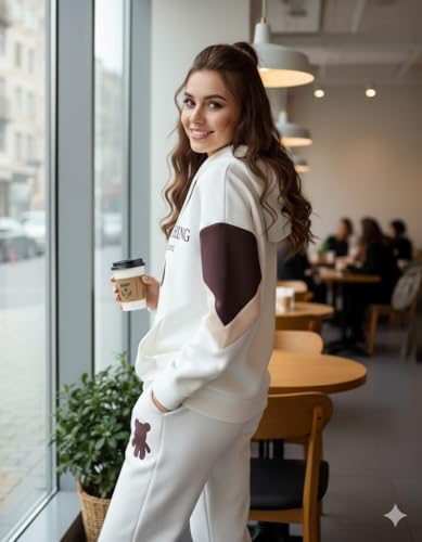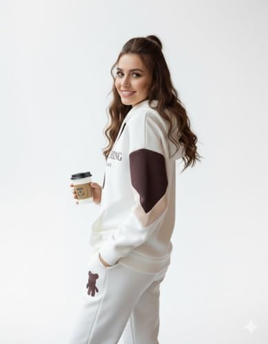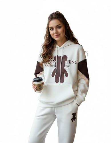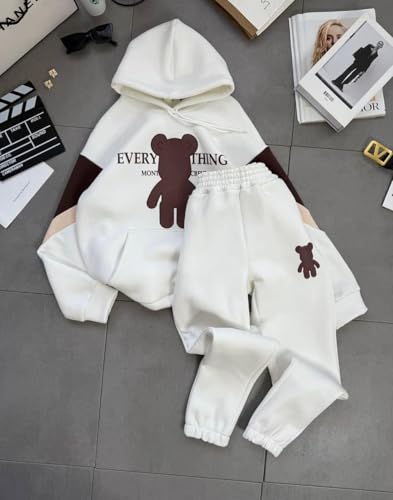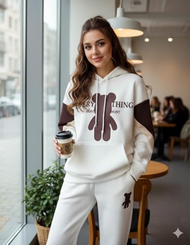 Generic - طقم سويت شيرت شتوي نسائي مطبوع دب لطيف – خامة ميلتون ناعمة عالية الجودة – مقاس وان سايز مريح من 55 إلى 85 ك – طقم كاجوال أنيق لفصل الشتاء