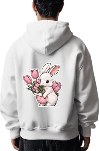 Generic - Cute Bunny Flowers كنزة بغطاء للرأس وظهر أبيض