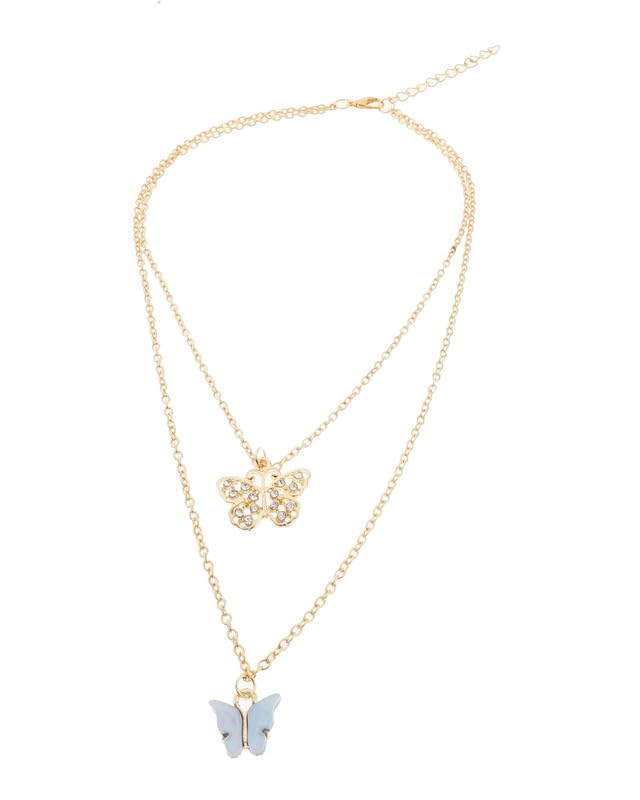 Generic - سلسلة استانلس ستيل بدلاية أنيقة 2 دور بتصميم لطيف على شكل فراشة مقاس قابل للتعديل للبنات ، ذهبي TON-A-1265