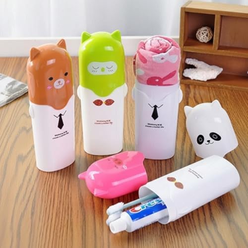Generic - حافظة فرشاة ومعجون أسنان للسفر 2 في 1 بتصميم كرتوني جذاب - منظم أدوات العناية الشخصية للرحلات، المدرسة، والجيم.