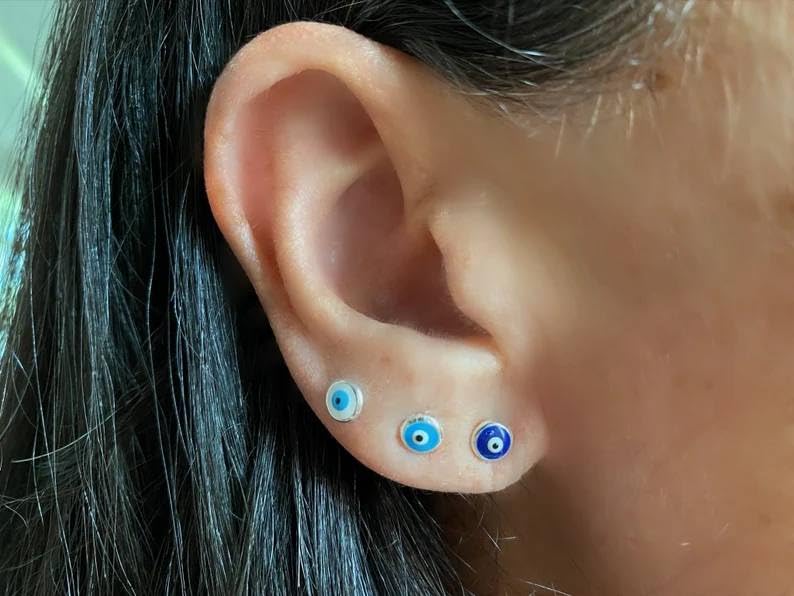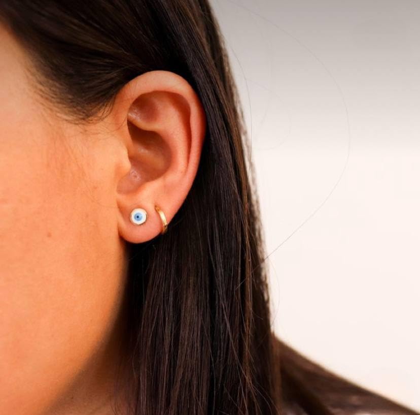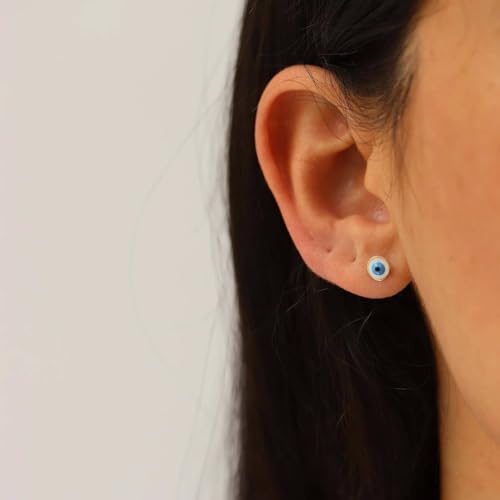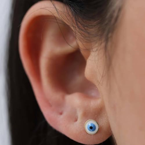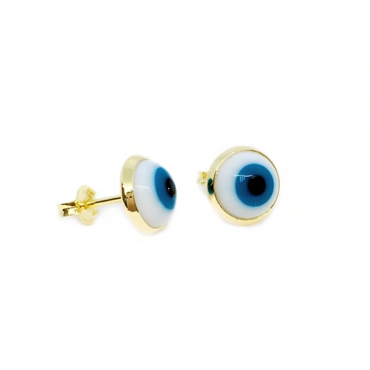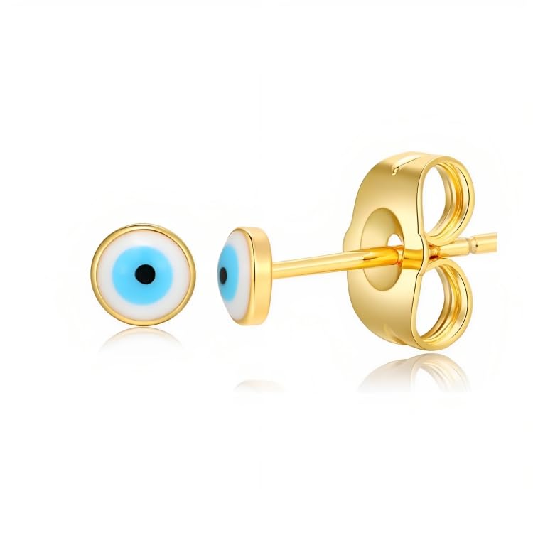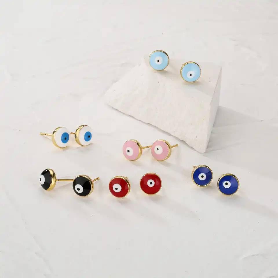Generic - اقراط اذن صغيرة بتصميم عين الحسد التركية دائرية ملونة لطيفة للنساء والرجال، مجوهرات للحفلات بلون ذهبي