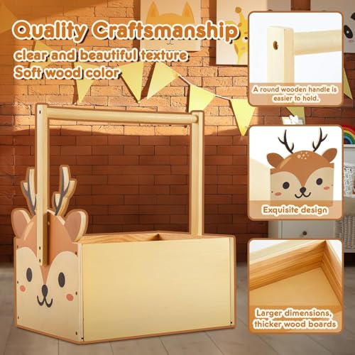 - واسعة وعملية: مصممة للتخزين، يبلغ مقاس سلة الهدايا الخشبية الخاصة بنا حوالي 19.5 × 15.7 × 11.8 انش، مما يوفر مساحة واسعة لتخزين مختلف الأشياء مثل الحفاضات والألعاب والملابس؛ طول المقبض حوالي 14 انش، طويل بما يكفي للتزيين