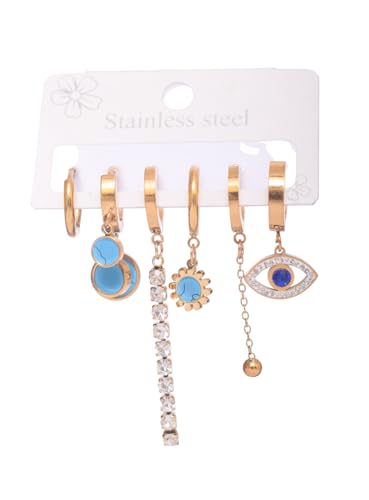 Generic - طقم أقراط أذن استانلس ستيل بتصاميم لطيفة 6 قطع اشكال مختلفة نسائي ، ذهبي TON-A-1024