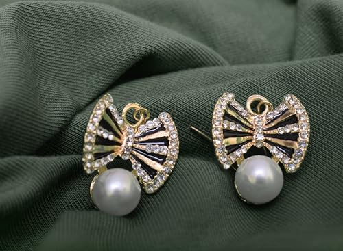 Generic - أقراط أذن بريمة استانلس ستيل بتصميم لطيف مرصع كريستال لامع نسائي ، ذهبي TON-A-1095