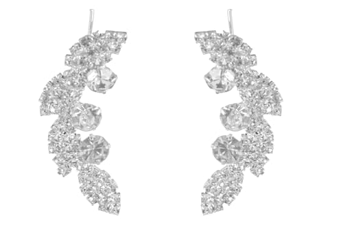 Generic - أقراط أذن بريمة استانلس ستيل بتصميم لطيف مرصع كريستال لامع نسائي ، فضي TON-A-1030