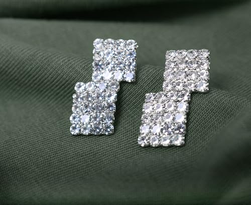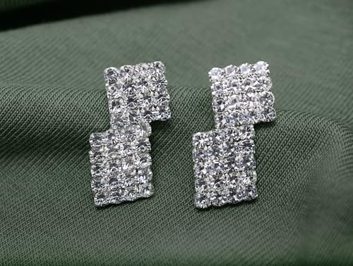 Generic - أقراط أذن بريمة استانلس ستيل بتصميم لطيف مرصع كريستال لامع نسائي ، فضي TON-A-1087