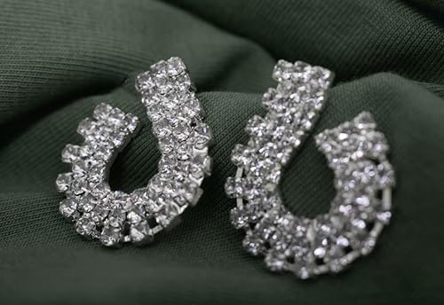Generic - أقراط أذن بريمة استانلس ستيل بتصميم لطيف مرصع كريستال لامع نسائي ، فضي TON-A-1089