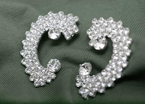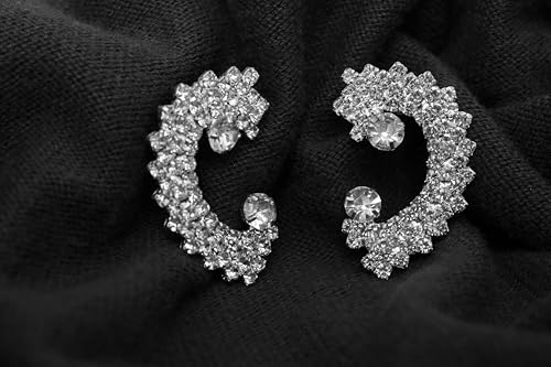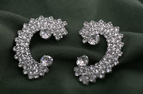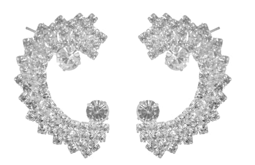 Generic - أقراط أذن بريمة استانلس ستيل بتصميم لطيف مرصع كريستال لامع نسائي ، فضي TON-A-1092