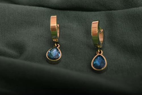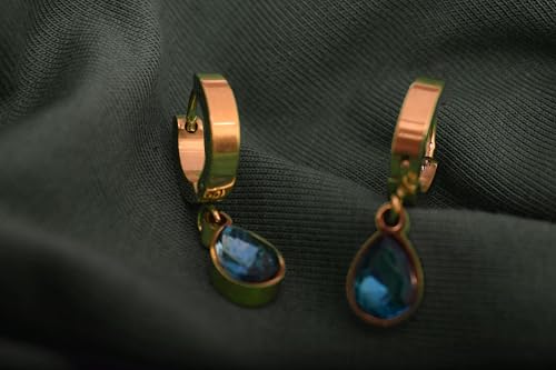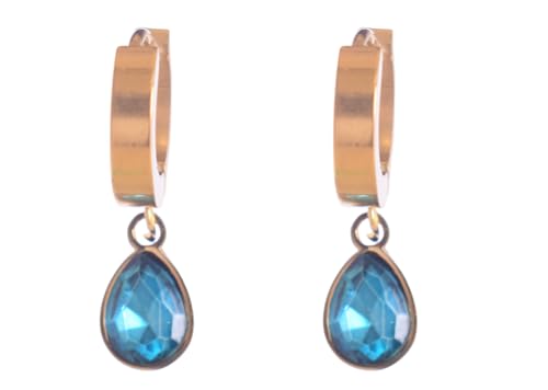Generic - أقراط أذن استانلس ستيل بتصميم لطيف مرصع بفص فيروزى لامع للبنات ، ذهبي TON-A-1104