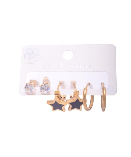 Generic - طقم أقراط أذن استانلس ستيل بتصاميم لطيفة 3 قطع اشكال مختلفة نسائي ، ذهبي TON-A-1023