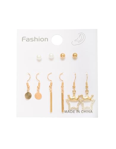 Generic - طقم أقراط أذن استانلس ستيل بتصاميم لطيفة 5 قطع اشكال مختلفة نسائي ، ذهبي TON-A-1021