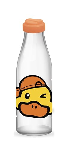 Kitchen's - زجاجة مياه زجاجية بتصميم بطة لطيفة مع غطاء برتقالي، تصميم شخصية كرتونية، سعة 1 لتر