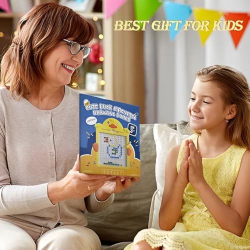 Generic - لوحة رسم مغناطيسية بتصميم بطة لطيفة للاولاد والبنات مع قلم مغناطيسي والعديد من الخرز، لوحة رسم مغناطيسية كبيرة للاطفال بعمر 3 4 5 6 7 8 سنوات فما فوق - 14.3 × 15 انش