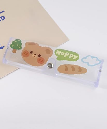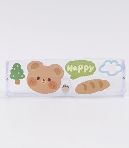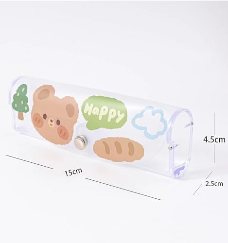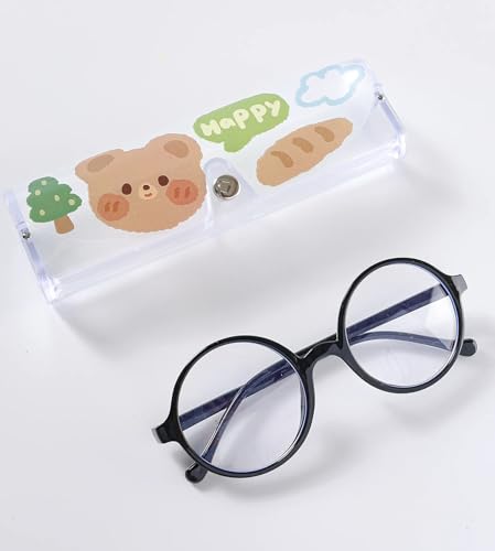 Generic - حافظة نظارات بلاستيكية شفافة ومرنه بتصميم لطيف، جراب لنظارات القراءة المحمولة للطلاب (دب بنى)