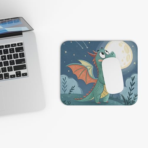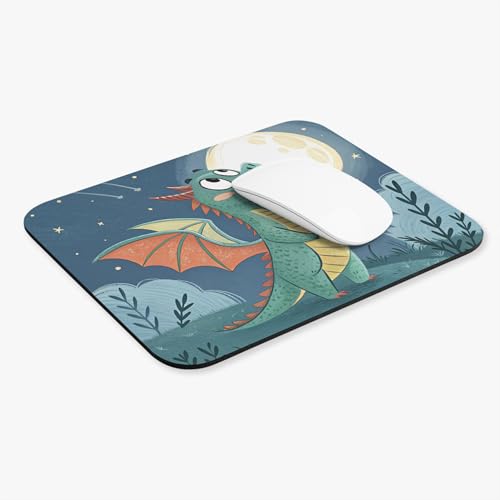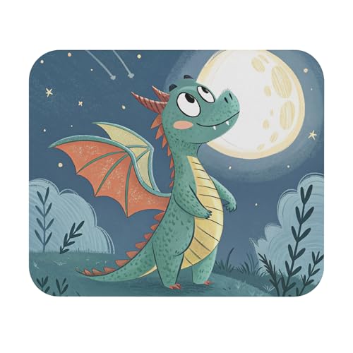 Generic - قاعدة ماوس بتصميم تنين اخضر لطيف للكمبيوتر واللاب توب - تنين خيالي رائع تحت القمر، سطح املس وقاعدة مطاطية غير قابلة للانزلاق