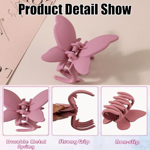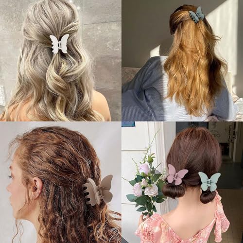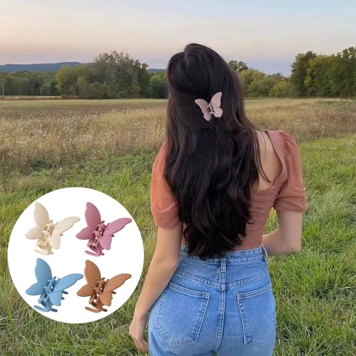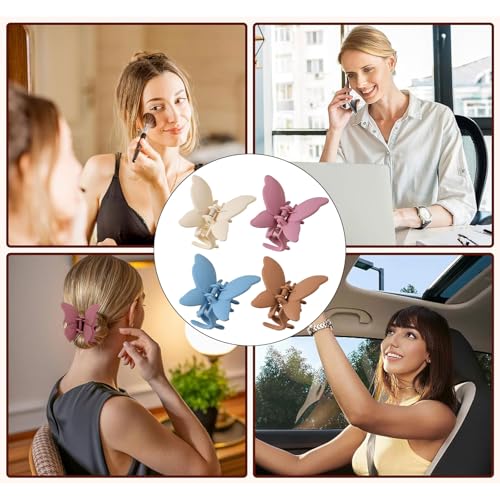 Rakiuty - مشابك شعر لطيفة للفتيات، مشابك شعر على شكل فراشة، اكسسوارات شعر قوية مانعة للانزلاق للفتيات والسيدات، انيقة ملونة للسميكة والرقيقة والمجعدة، 4 قطع