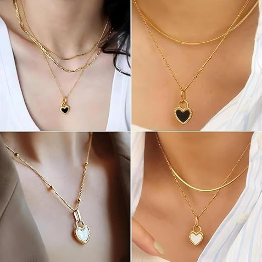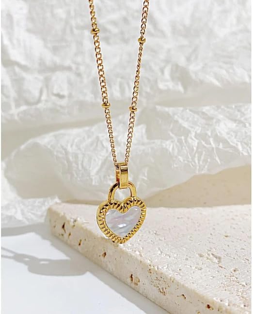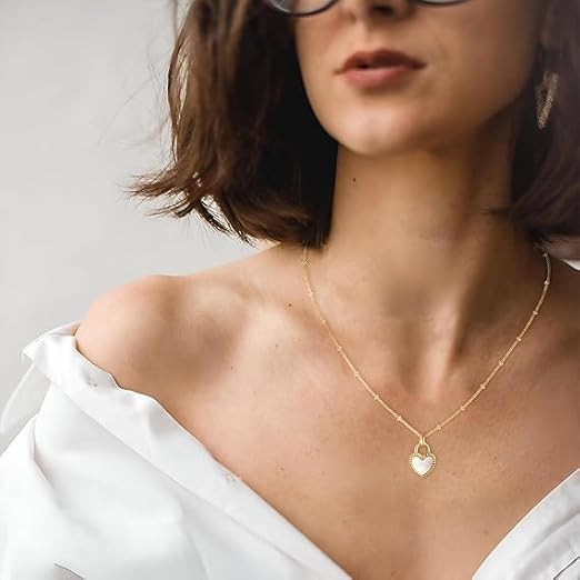 Generic - قلادة قلب لطيفة من الذهب عيار 18 قيراط بدلاية على شكل قلب صغير، ذهبية على شكل قلب للنساء، انيقة هدية عيد الحب للنساء .