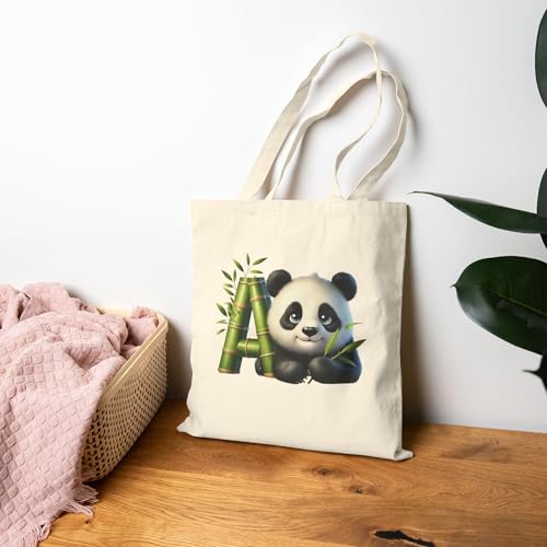 Generic - حقيبة كبيرة توت بتصميم باندا لطيف مع حرف A من الخيزران - حقيبة قماشية صديقة للبيئة لمحبي الباندا مع سحاب - 791