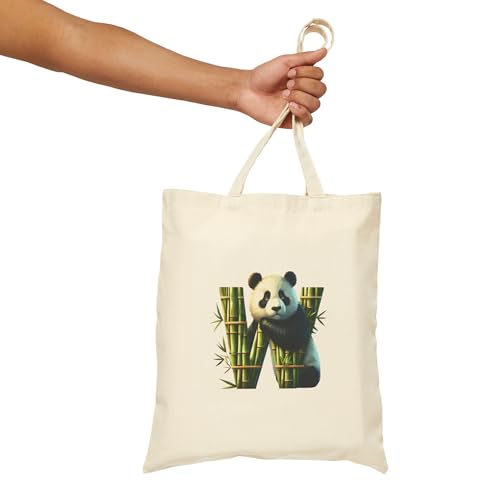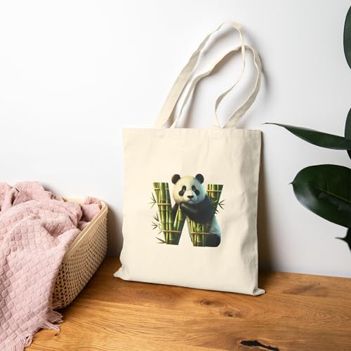 Generic - حقيبة يد كبيرة توت بتصميم باندا لطيف مع حرف W من الخيزران - حقيبة قماشية صديقة للبيئة لمحبي الباندا مع سحاب - 812
