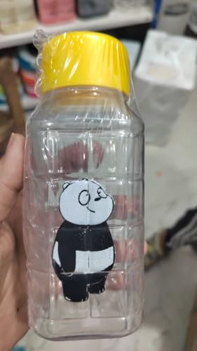 Generic - زجاجة مياه زجاج على شكل باندا لطيفة، شفافة مع أغطية ملونة، شكل مربع، وعاء مشروبات قابل لإعادة الاستخدام، عبوة متعددة (5 قطع)، سعة 300 ملليلتر