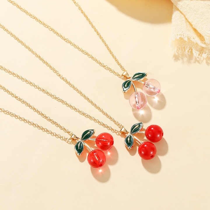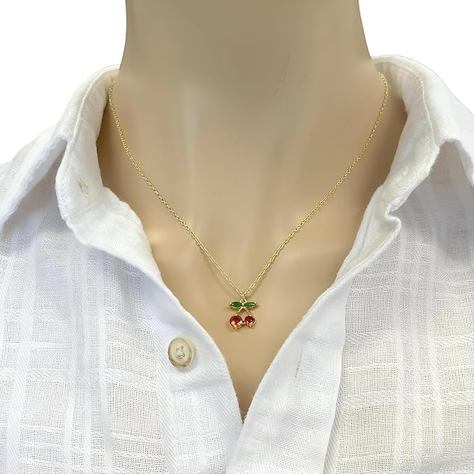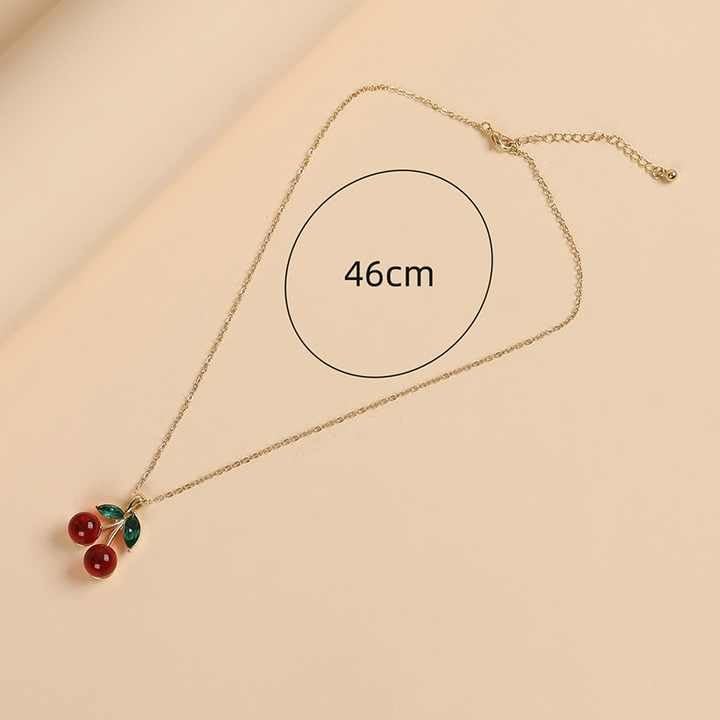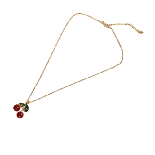 Generic - عقد بقلادة على شكل كرز احمر لطيف للنساء والفتيات، سلسلة قابلة للتعديل على شكل ورقة فاكهة خضراء، هدايا مجوهرات رائعة لها