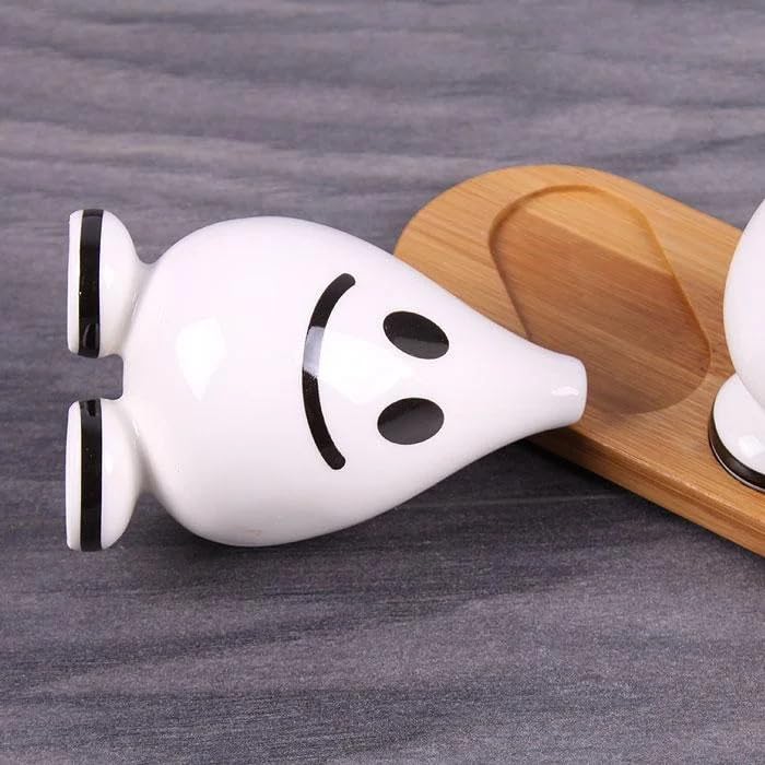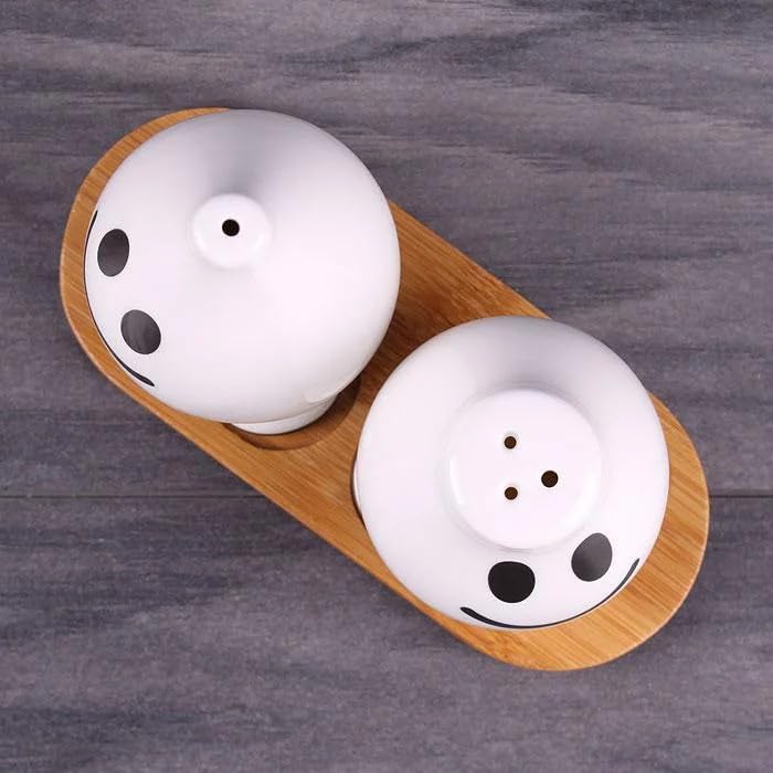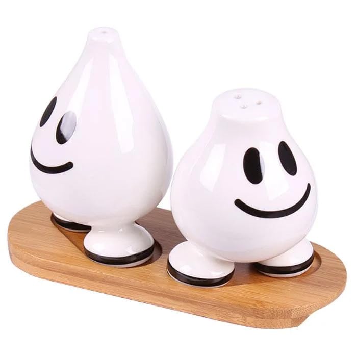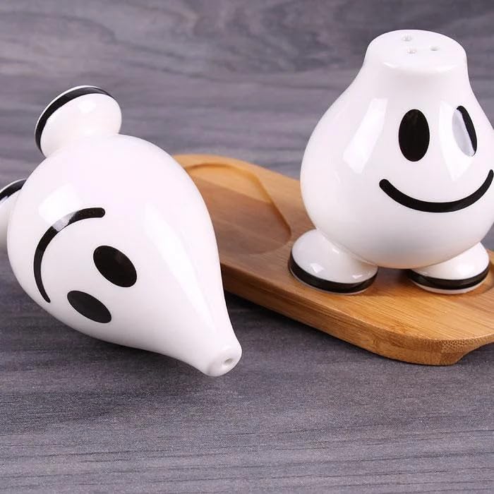Generic - مجموعة شاكر الملح والفلفل اللطيفة المبتسمة مع صينية خشبية - موزعات توابل سيراميك لطاولة المطبخ، هزازات توابل مزخرفة