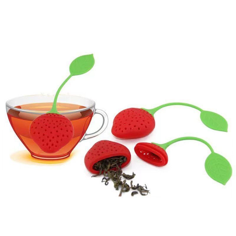 Generic - مصفاة شاي لطيفة، مصفاة شاي مرشح للتوابل العشبية سيليكون موزع سيليكون الفراولة فضفاض للتوابل العشبية 3 قطع