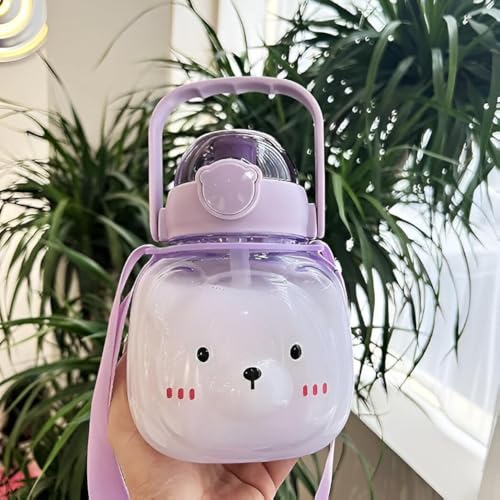 Generic - زجاجة مياه على شكل دب -تيدي جذاب للأطفال مزودة بمقبض مريح وحزام حمل قادرة ما يصل إلى 500 مل من السوائل لترطيب سهل أكريليك