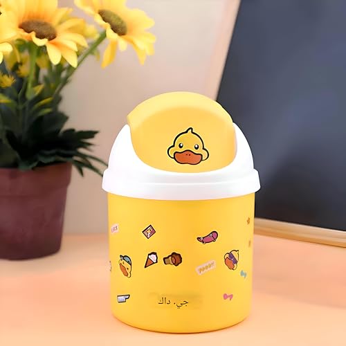 Generic - سلة مهملات لطيفة بتصميم بطة كرتونية مرحة وأنيقة، سلة قمامة تناسب أي غرفة لتخزين النفايات، لون أصفر فاقع