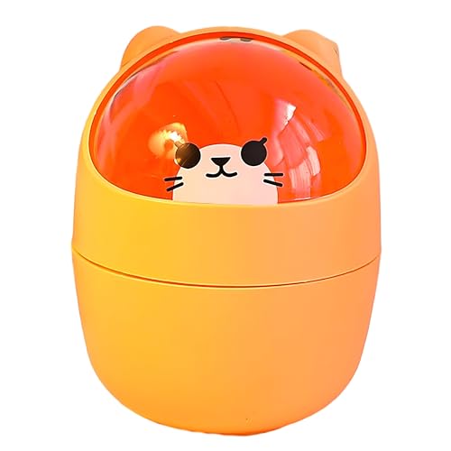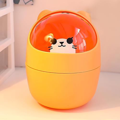 Generic - سلة مهملات لطيفة - سلة مهملات صغيرة على شكل قطة كرتونية رائعة مع غطاء متارجح، مثالية للمكاتب والسيارات والمكاتب، صغيرة وأنيقة للمساحات العصرية. (اصفر)