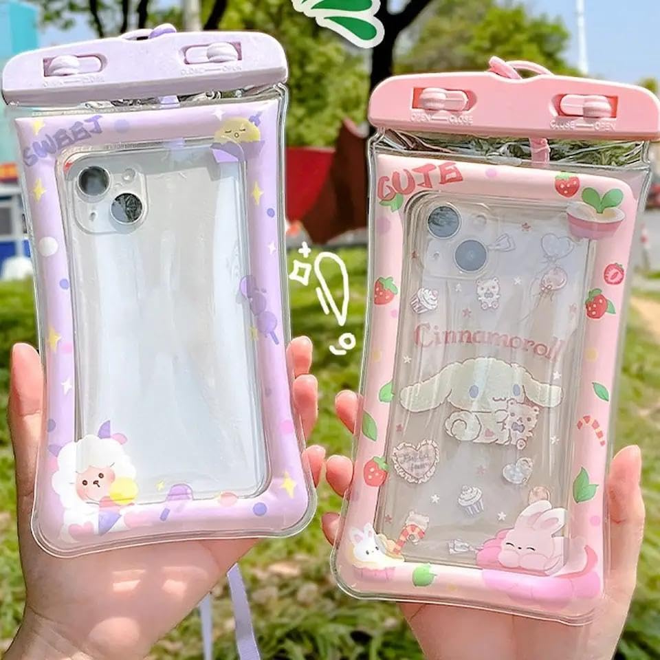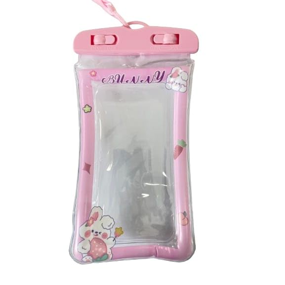 Generic - شنطة موبايل لطيفة مقاومة للماء بتصميم أرنب مع إطار وردي قابل للنفخ للسباحة والشاطئ وحمام السباحة | تناسب جميع الموبايلات الذكية