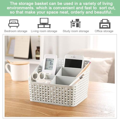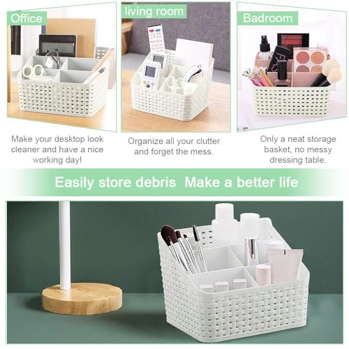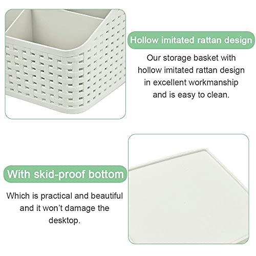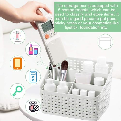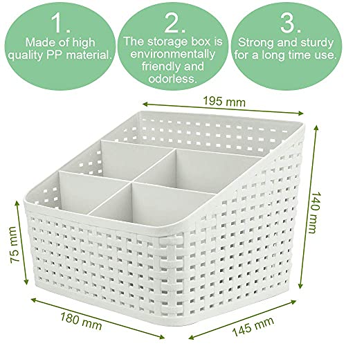 - ⭐ تصميم مقصوص مع 5 أقسام: تتكون سلة التخزين البيضاء العاجية هذه من 5 مساحات تخزين بزيادات لتصنيف المنتج. يتناسب بشكل جيد مع المساحة المحدودة على الرف أو الطاولة ويجعل سطح المكتب الخاص بك أكثر راحة ونظافة.