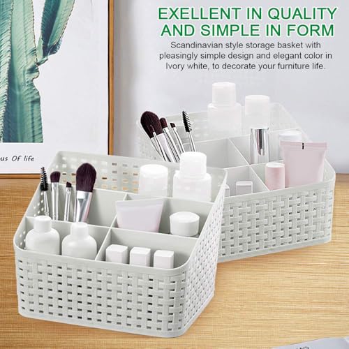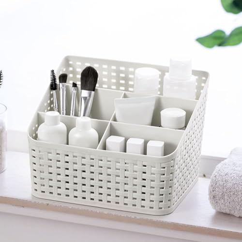 cutefly - سلة تخزين من الخيزران من كيوت فلاي، صندوق تخزين بلاستيكي لمستحضرات التجميل، سلة متعددة التنظيم، حامل تخزين للمكتب المنزلي، طاولة الزينة، رف مستحضرات التجميل، الحمام (عاجي أبيض)
