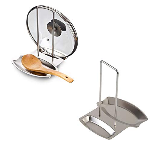 cutefly - حامل غطاء وعاء من الفولاذ مقاوم للصدأ، مسند ملاعق، حامل مقلاة، منظم مطبخ من كيوتفلي، قطعتين، فضي
