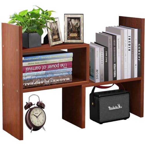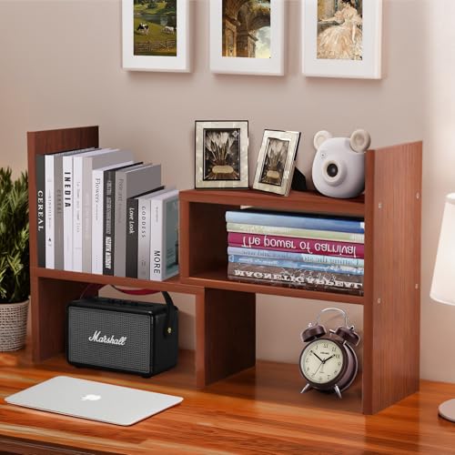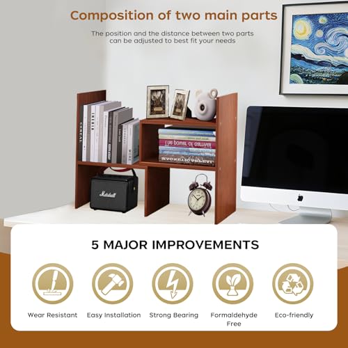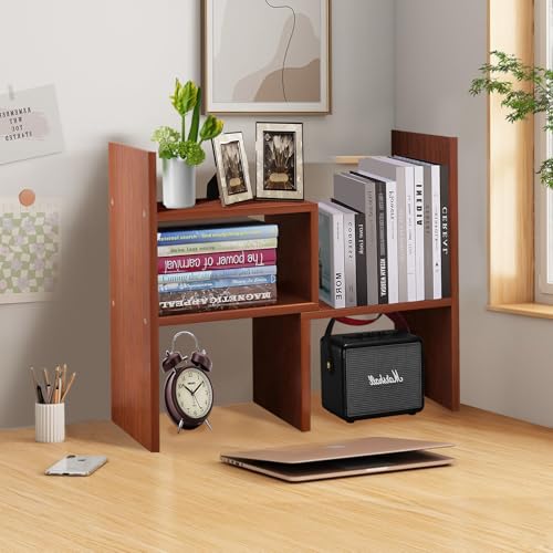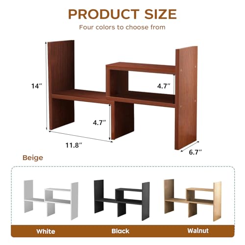 Cuteripe - رف منظم مكتب خشبي أبيض من كوتيريب، رف كتب لسطح المكتب قابل للتعديل، رف كتب صغير لمستلزمات المكتب والتخزين المنزلي، حامل ديكور طبيعي (6*)