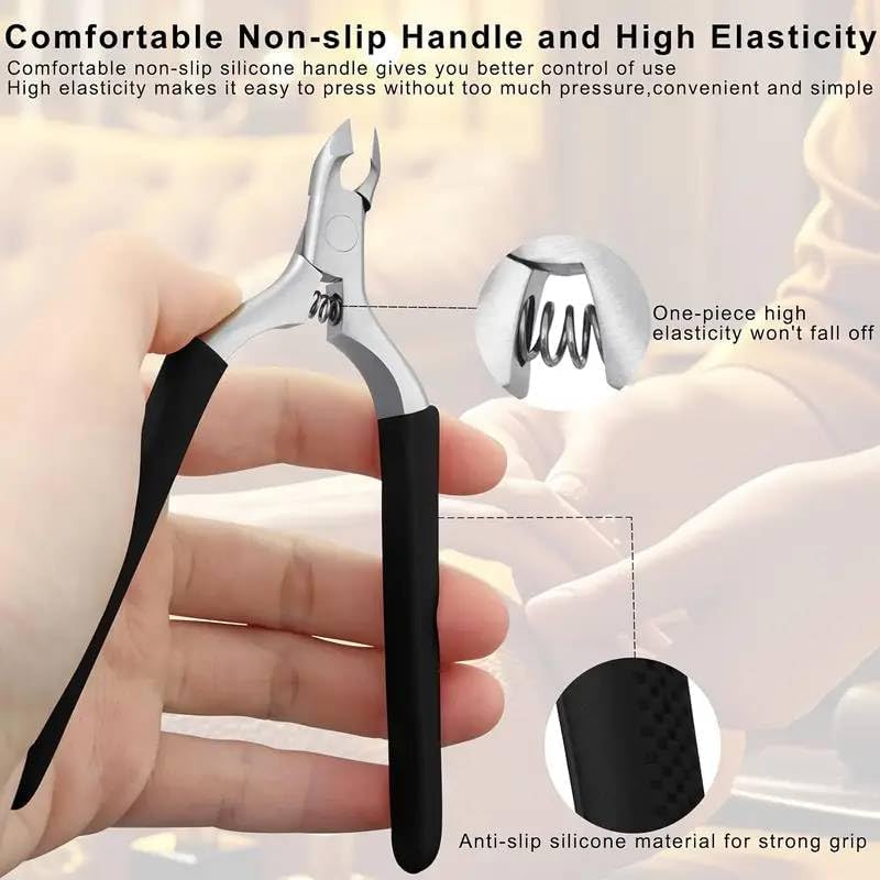 Generic - قطاعة الزوائد اللحمية بمقبض سيليكون اسود - قصافة اظافر من الستانلس ستيل لاظافر اليدين والقدمين، اداة تشذيب دقيقة للزوائد اللحمية والجلد الميت والاظافر المعلقة، اداة مانيكير متينة