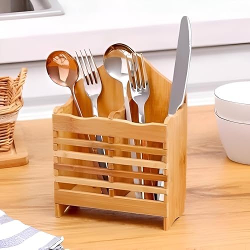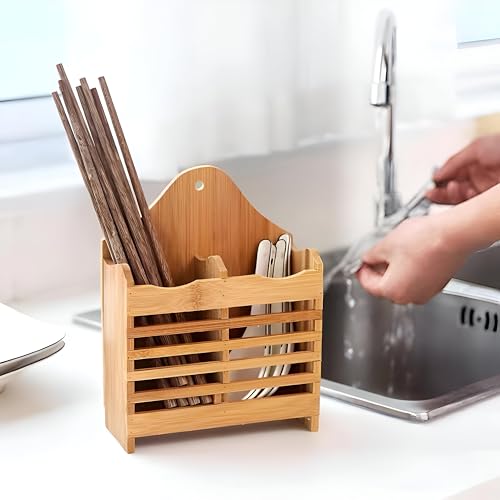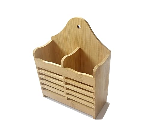- يتميز حامل الأدوات المصنوع من الخيزران بتصميم مزدوج القسم، مما يوفر طريقة أنيقة ومنظمة لتخزين الملاعق والشوك والسكاكين وأدوات المطبخ الأخرى. يمتزج شكله المستطيل البسيط واللمسة النهائية الطبيعية بسلاسة مع ديكورات المطبخ المختلفة، بينما تسمح إمكانية التعليق بسهولة التركيب على الحائط أو وضعه على أسطح الطاولات للوصول السريع.