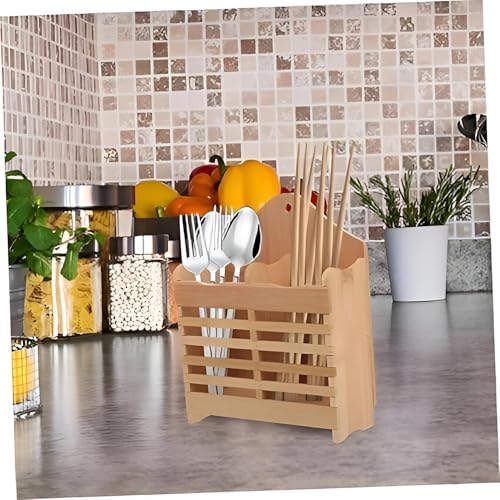 Generic - رف تجفيف ادوات تناول الطعام - حامل ادوات تقديم خشبي مع هيكل من الخيزران، يتميز بفتحات متعددة لتجفيف وتنظيم ملاعق التقديم والشوك وعيدان الطعام بكفاءة